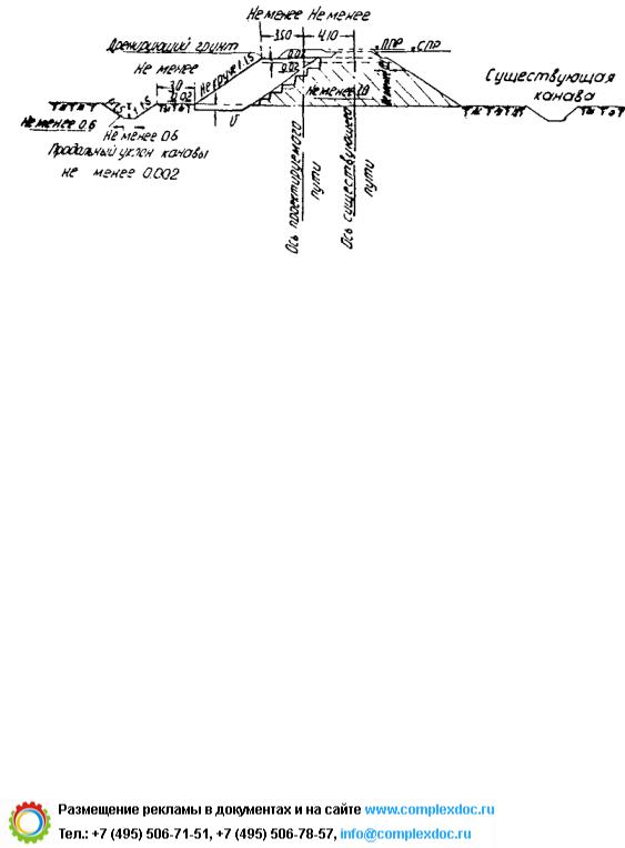 4.При грунтах с коэффициентом фильтрации менее 3 м/сутки ширина и конструкция основной площадки принимаются как для глинистых грунтов (см. рис. 10).