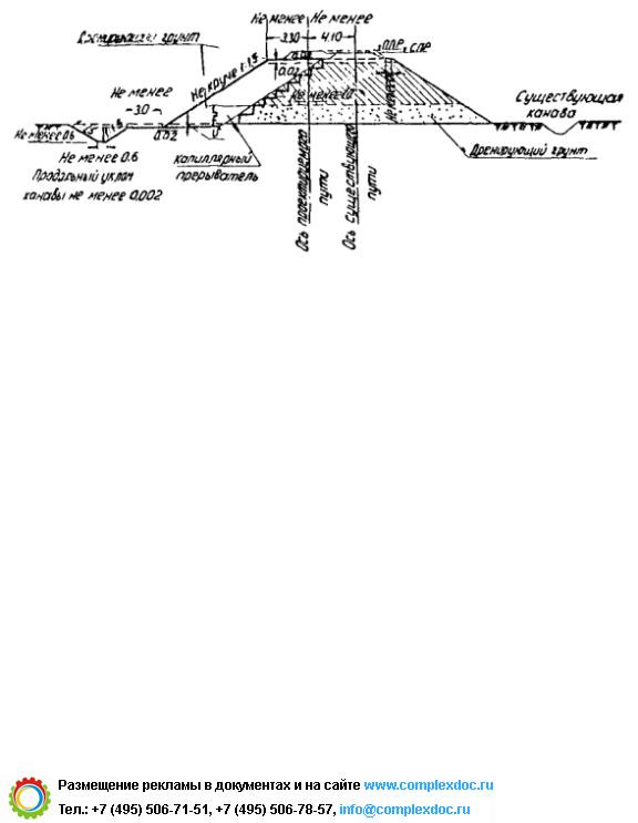 7. При отсутствии у существующей насыпи капилляропрерывателя, а также деформаций, связанных с засоленностью грунтов, при пристройке полотна под второй путь из грунта, однородного с грунтом существующего земляного полотна, капиллярный прерыватель устраивать не требуется.
