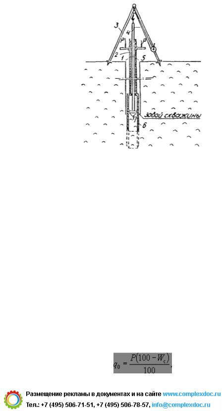 1 - отверстие под штифт во внутренней штанге; 2 - то же в наружной штанге; 3 - тренога металлическая; 4 - внутренняя штанга; 5 - наружная штанга; 6 - стакан грунтоноса; 7 - поршень с конусом