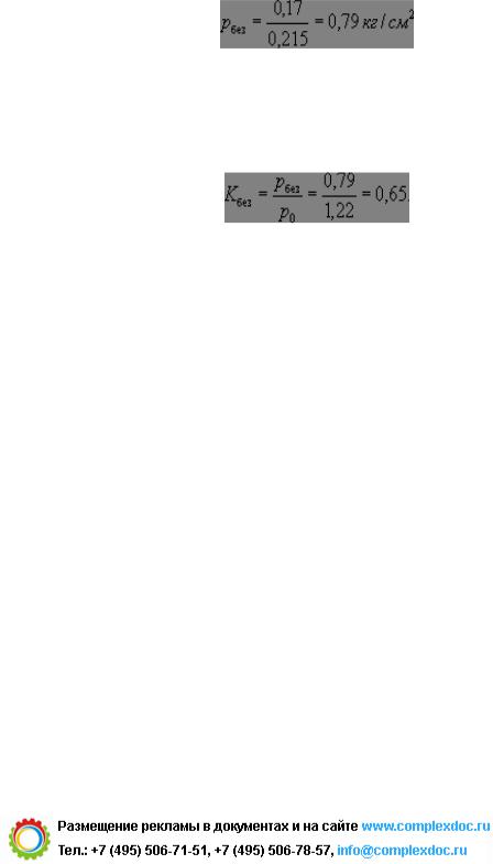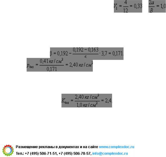 Расчетная величина нагрузки, определенная выше при расчете осадки, составляет 1,0 кг/см2. При внешней нагрузке p0 = 1,0 кг/см2 вертикальные нормальные напряжения в верхнем слое составят: рz1 = а1ср × р0 = 0,985 × 1,0 = 0,99 кг/см2.