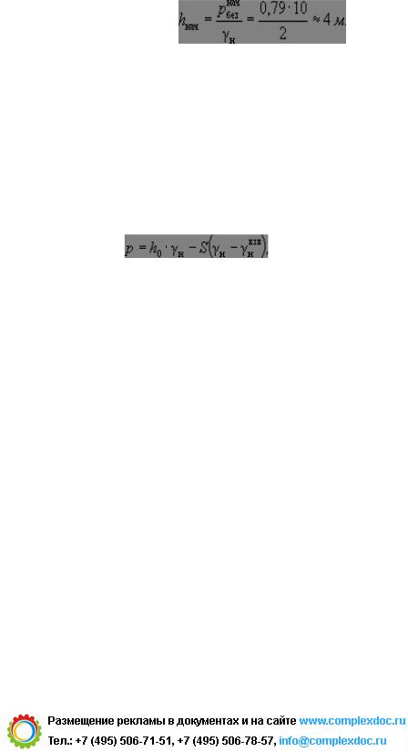 Лишь при превышении осадкой величины расстояния от поверхности земли до горизонта грунтовых вод нагрузка начинает снижаться по мере осадки в соответствии с зависимостью: