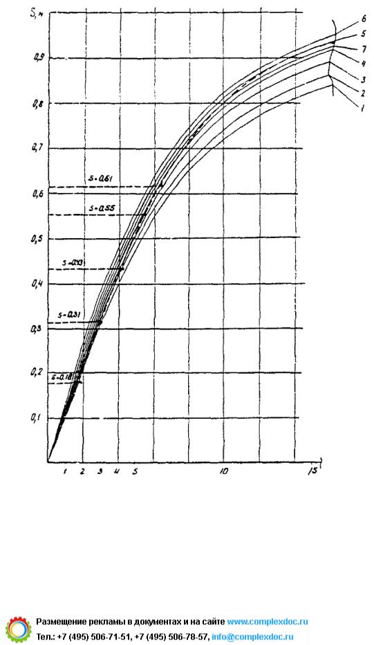 Далее отсыпка завершается и осадка следует кривой 7 р = 1,15 кг/см2 до осадки 1,0 м, а затем - кривой 6 р = 1,05 кг/см2 до завершения.