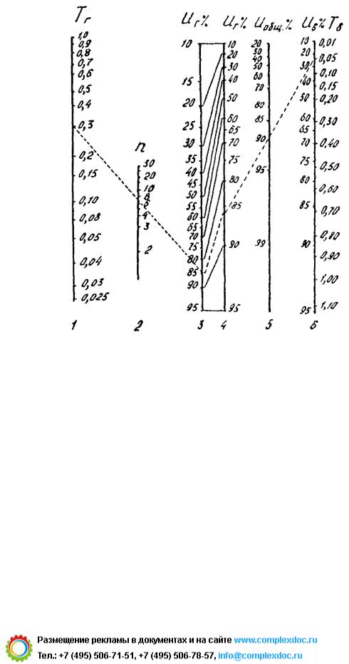 номограммой (см. рисунок данного приложения), где по предварительно вычисленным Tг, n и Tв графически находят соответственно uг, uв и общую степень консолидации uобщ.