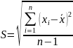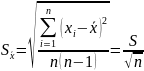 вычислить среднее квадратическое отклонение S группы, содержащей n результатов измерений по формуле: