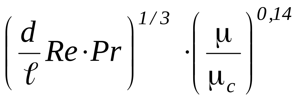 Уравнения подобия для определения среднего коэффициента теплоотдачи при вязкостном (GrPr 810 5) и вязкостно – гравитационном (GrPr 810 5) течении имеют вид:
