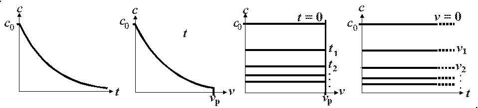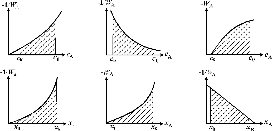 4.3.8. Изменение концентрации исходного реагента во времени t и по объему периодического реактора идеального смешения имеет вид: