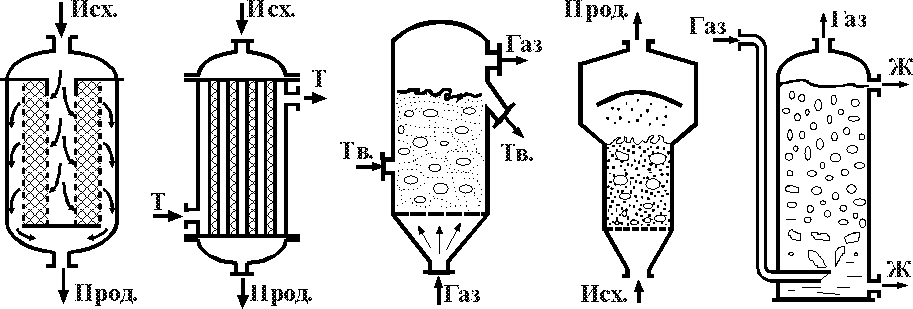реактор для гетерогенных процессов в псевдоожиженном слое (обжиг колчедана); Л)