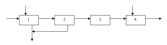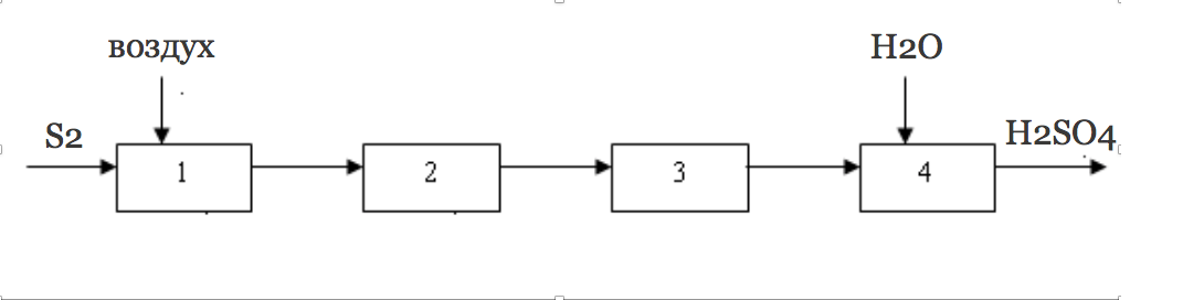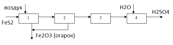 1-обжиг серосодержащего сырья; 2 — очистка и промывка обжигового газа; 3 - окисление SO2; 4 - абсорбция SO3