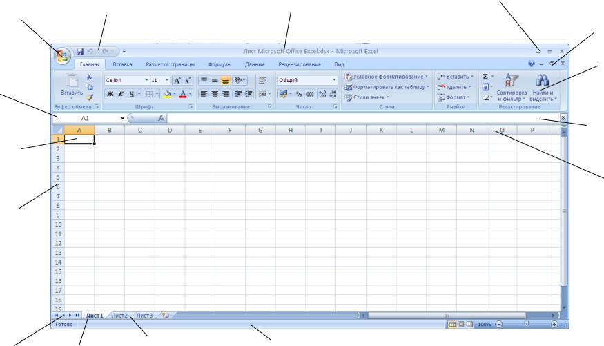 Создаваемые в Excel файлы называются рабочими книгами. Рабочая книга состоит из нескольких листов, наполненных разной информацией. Ярлычки с именами рабочих листов видны над строкой состояния.