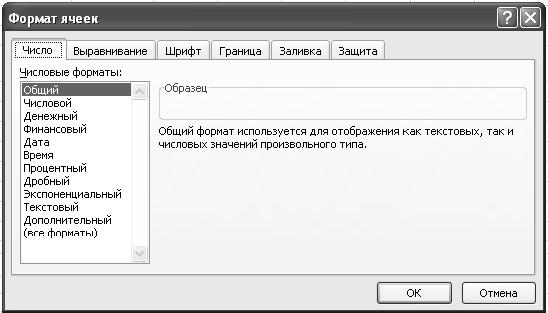 Рис. 3.2. Диалоговое окно Формат ячеек. Вкладка Число