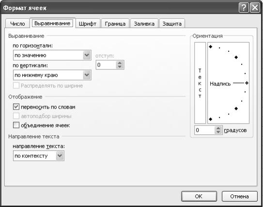 Рис. 3.3. Диалоговое окно Формат ячеек. Вкладка Выравнивание