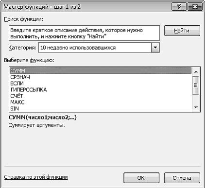 Рис. 3.8. Первое диалоговое окно Мастера функций
