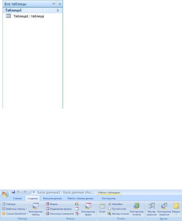 Как только пользователь открывает новую или существующую базу данных в Access 2007, объекты этой базы данных отображаются в области переходов (рис. 4.9).