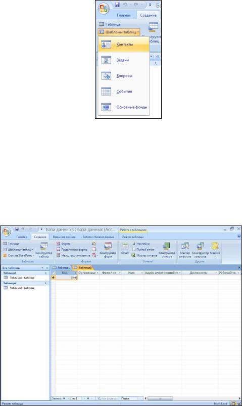 Для создания таблицы можно применить шаблоны. Для этого необходимо перейти во вкладку Создание (рис. 4.10).