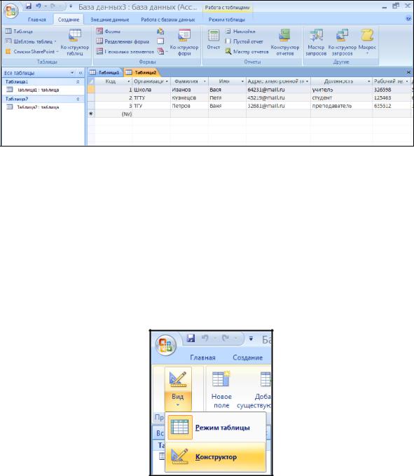 Альтернативным способом создания таблиц является Конструктор таблиц. Чтобы вызвать этот инструмент необходимо выбрать закладку таблицы. Во вкладке Режим таблицы, в группе Вид выбирается режим конструктора (рис. 4.14).