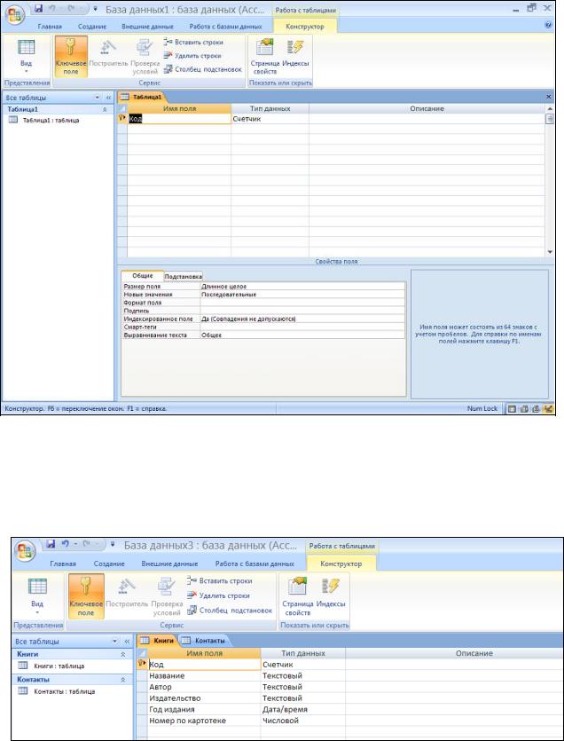 В открывшемся окне конструктора таблиц можно вводить имена полей новой таблицы или добавлять поля в уже созданную таблицу (рис. 4.15).
