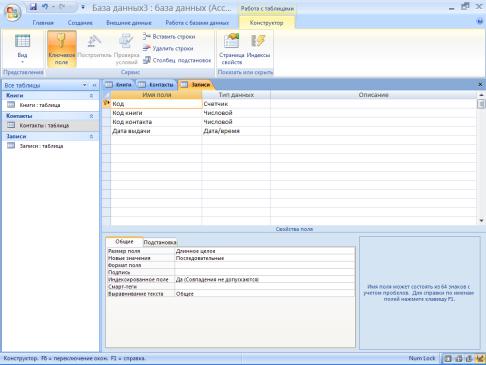 2.Измените созданную вами ранее таблицу баз данных при помощи конструктора.