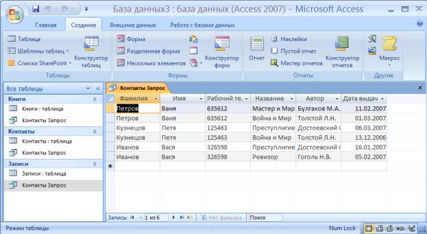 1.Создайте запрос с помощью конструктора запросов (выберите отличные от предыдущего задания поля для поиска).