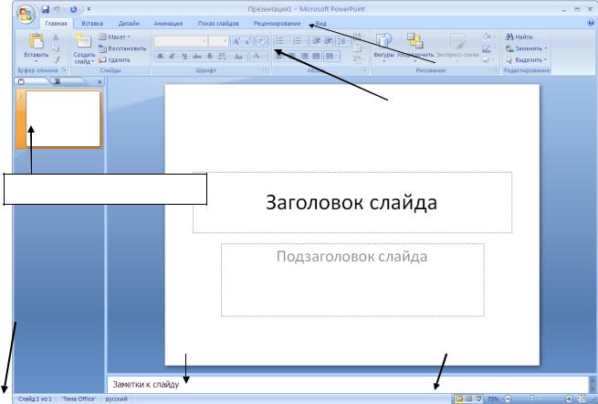 Рис. 5.1. Обычный вид основного окна программы Ms PowerPoint