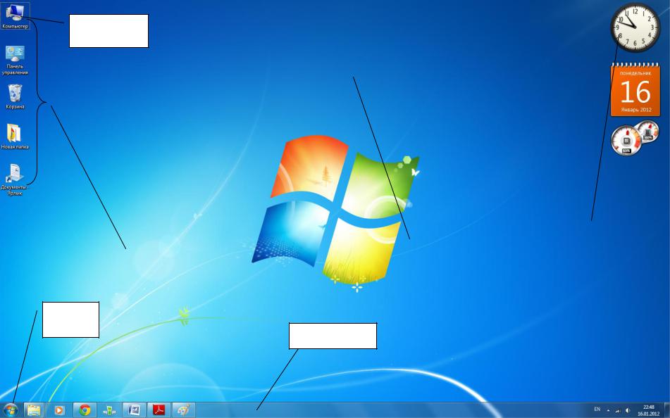 После загрузки Windows перед глазами пользователя предстает экран, в котором принято выделять следующие части: