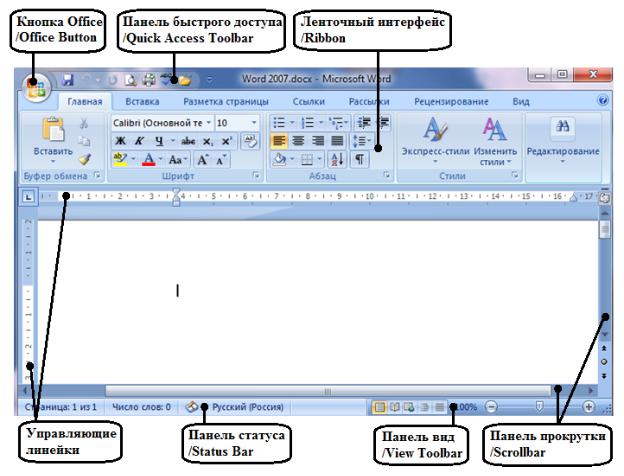 Рис.2.1. Интерфейс Microsoft Word 2007.