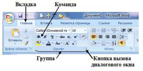 Ленточный интерфейс/Ribbon содержит набор кнопок и команд, позволяющих выполнять различные действия с документом (рис.2.5.).