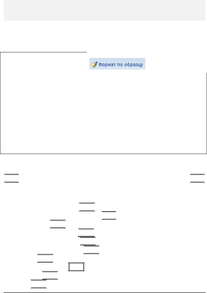 Чтобы воспользоваться этой командой, установите курсор на тексте, формат которого нужно скопировать, и нажмите кнопку Формат по образцу. Если требуется применить этот формат к нескольким фрагментам текста, дважды щелкните кнопку Формат по образцу, чтобы она осталась в нажатом положении. Затем выделите текст, к которому требуется применить выбранные параметры форматирования.