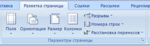 На панели быстрого доступа данной группы Параметры страницы (рис.2.12.) располагаются следующие команды: