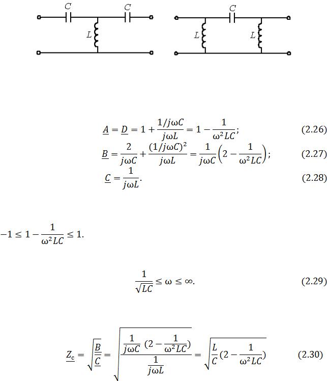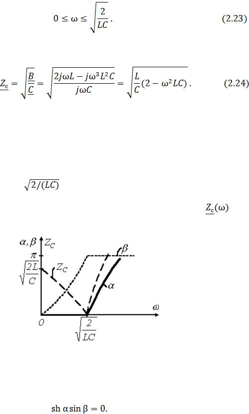 Анализ соотношения (2.24) показывает, что с ростом частоты ω в пределах, определяемых неравенством (2.23), характеристическое сопротивление фильтра уменьшается до нуля, оставаясь активным. Поскольку, при нагрузке фильтра сопротивлением, равным характеристическому, его входное сопротивление также будет равно