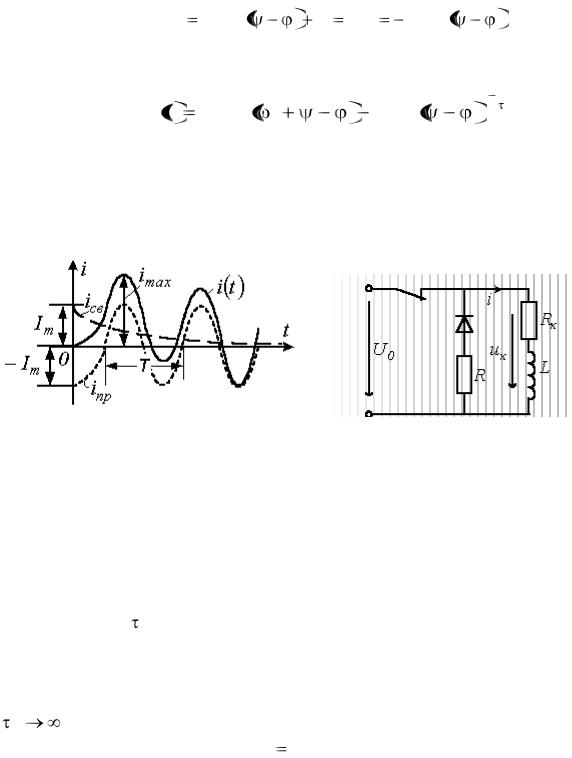 ставляющая существенно не уменьшается и максимальная величина тока переходного процесса imax может примерно вдвое превышать амплитуду принуж-