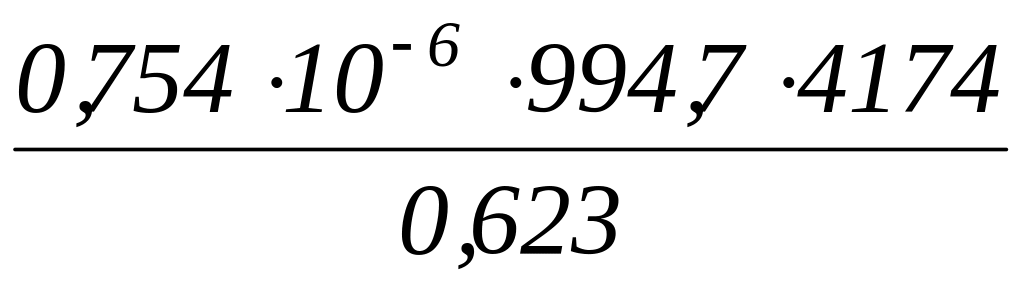 = 994,7 кг/м3 ; ср = 4174 Дж/(кг.К); = 0,623 Вт/м.К); = 0,75410 -6 м2/с.