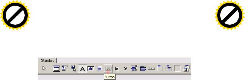 Командна кнопка — компонент Button — додається у форму точно так, як і інші компоненти. Значок компоненту Button знаходиться на вкладціStandard (мал. 2.16).