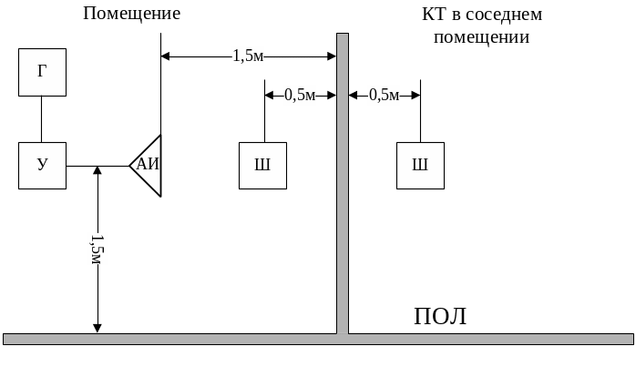 7.3. При включенном АИ в КТ в соседнем помещении измеряется уровень акустического сигнала LСi2 . Уровень излучаемого тест-сигнала выбирается из условия его надежной фиксации средствами измерения в КТ.