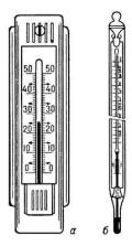 З усіх типів термометрів (рідинно-скляні, механічні, барометричні, термометри опору, термоелектричні, пірометри) для виміру температури повітря використовуються рідинно-скляні.