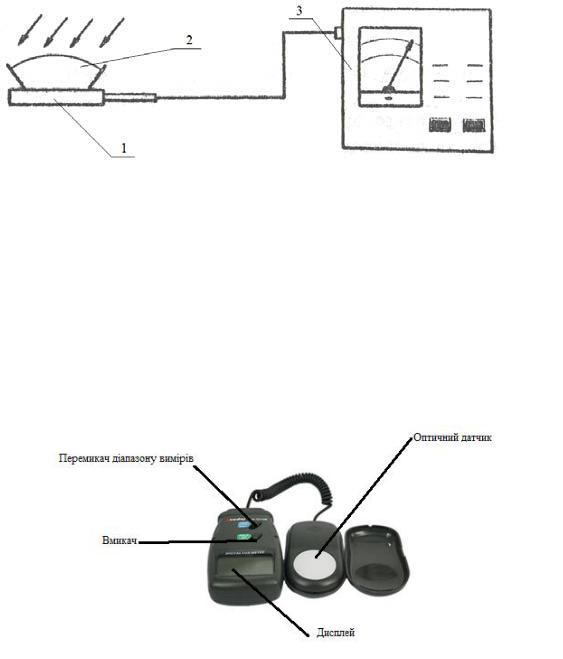 2.1 Люксметр Ю 116, який складається з селенового фотоелемента 1 з насадками 2 і електричного вимірювального приладу 3 (рис. 2.1)