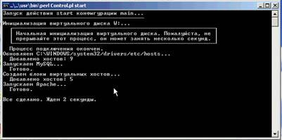 13 Після цього можна вже починати роботу з сервером. Запустити сервер можно клацнувши мишкою по ярлику Start servers. Після цього система видасть повідомлення, зображені на малюнках 1.4 та 1.5, а після цього запустить сервер.