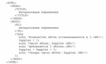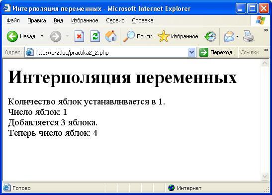 3 Розгляньте приклад використання інтерполяції змінних. Введіть наступний код: