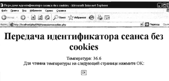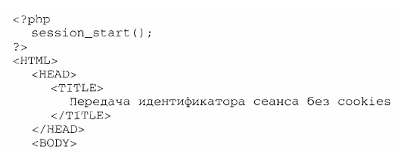 Збережіть отриманий код у файлі phpsessionnocookies.php. Результат виконання представлений на малюнку 13.2