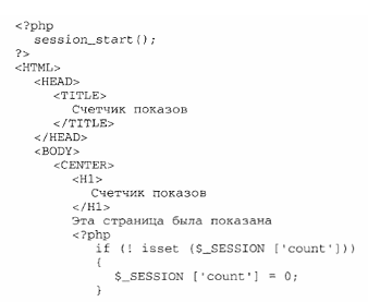 5 У цій вправі потрібно створити лічильник відвідувань сторінки. Для цього застосовується зберігання даних сеансу. Скористайтеся поданим нижче кодом: