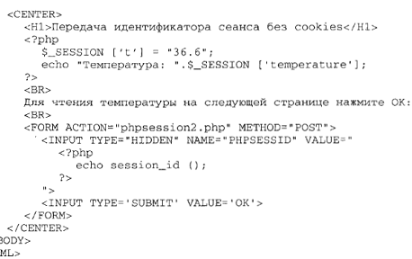 6 Передайте ідентифікатор сеансу без cookies через приховане поле форми за допомогою наступного коду: