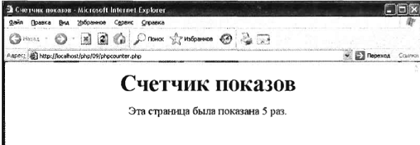 Збережіть отриманий сценарій у файлі phpcounter.php. Результат виконання показаний на малюнку 13.1