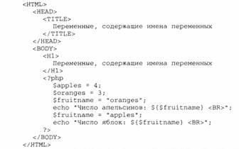 Збережіть цей файл. Він вміщує в собі команди HTML та РНР-код. РНР-код розміщується між дескрипторами <? ?> та містить команду виводу echo.