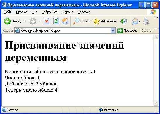 Малюнок 2.2 – Результат виконання прикладу 2. Інтерполяція змінних в рядках.