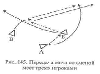 Рисунок 8 - Передача мяча со сменой мест тремя
