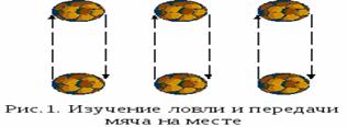 Более подробно упражнения для обучения передачам мяча на месте и в движении показаны в Приложении 4.