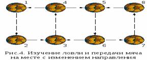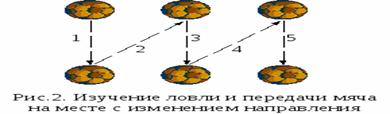 передачи мяча на месте с изменением направления
