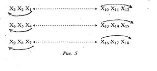 мяч игроку Х4 и двигается в конец противоположной колонны. Так же действует