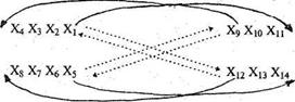 направлении передачи в конец колонны. Так же действует и игроку Х2.
