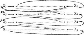 в расстановке, показанной на рис. 7, передавая мяч друг другу. Игрок X1