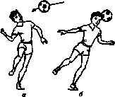 сторону мяча. Туда же делается резкое движение головой с тем расчетом, чтобы
